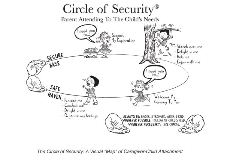 The Circle of Security presents the idea of offering a safe base for children to go off and explore, knowing and feeling secure that they have a safe haven to return to if they are feeling unsure or once they have made a new discovery.